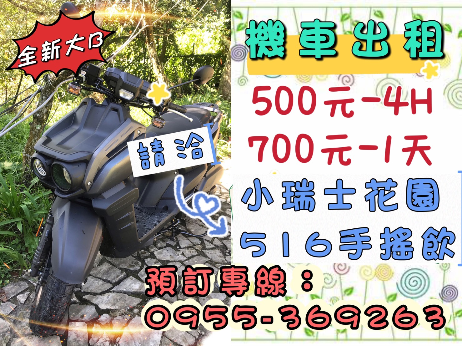 另外~於愛情故事館有機車出租服務~